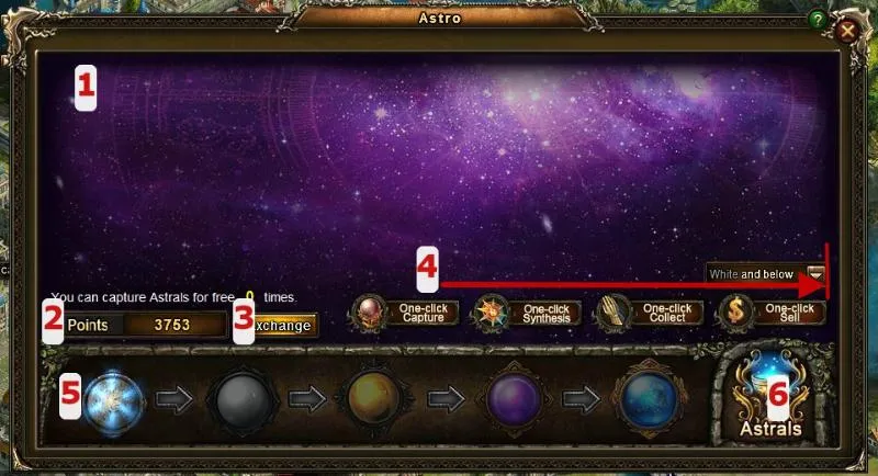 3) С помощью кнопки Exchange можно зайти в магазин, где Star Points обмениваются на астралы (допустим, если вам не везет, и вы не можете выловить нужный оранжевый астрал)