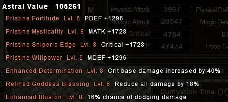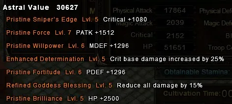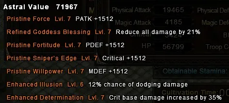 Determination (увеличивает базовый урон критического удара) – если раньше критический удар составлял, скажем, 150% от общего урона, то с астралом на 5% урон с критического урона будет составлять 155%. Этот астрал используется вместе со Shiper’s Edge, чтобы увеличить пользу с критов.