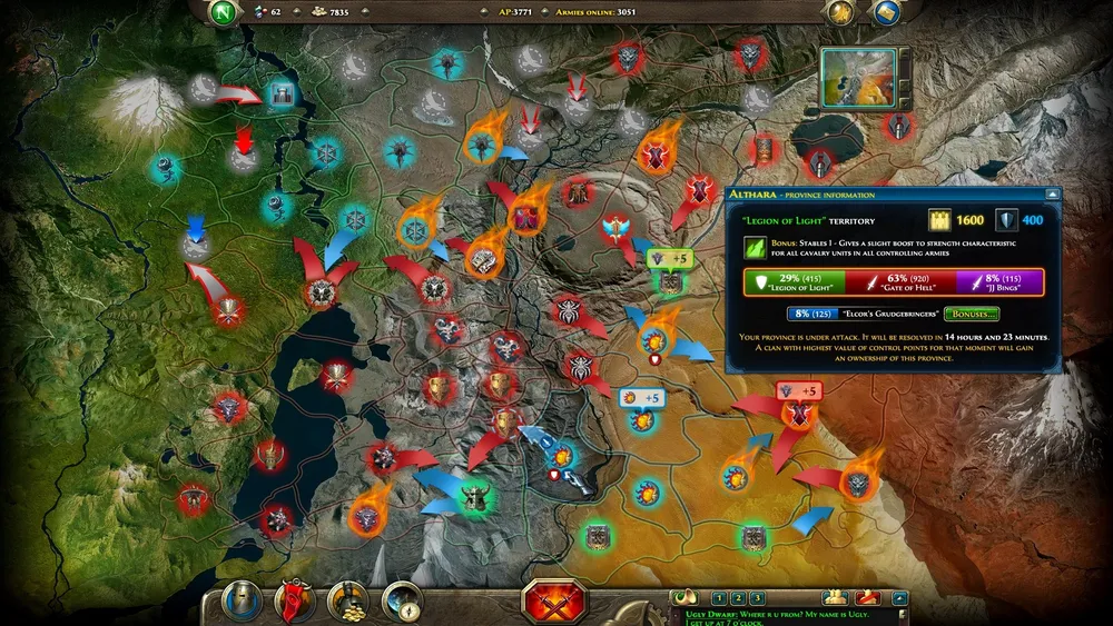 Объединяйтесь под одним знаменем с другими игроками, создавая могущественные Кланы, и принимайте участие в битвах за земли на Глобальной Карте в реальном времени! Сражайтесь за территории с другими Кланами, проводите рейды на провинции и получайте ценные бонусы.