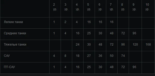 Сроки блокировки танков при уничтожении в «Мировой войне» на Глобальной карте (в часах)*: