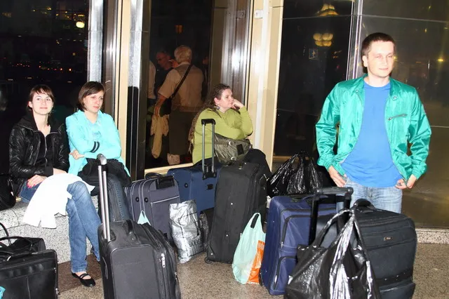 Все началось с подготовительных сборов. Несмотря на то, что поезд 002 с шифром БА отправлялся в Москву только в 21:55 по минскому времени, большинство решило поехать на вокзал прямо с работы. Именно поэтому 12 мая большую часть мебели в наших кабинетах составляли дорожные сумки и чемоданы. Затем вся «мебель» перекочевала аккурат в холл минского вокзала: