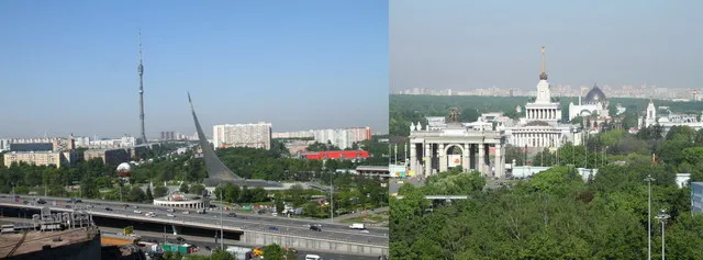 На трех машинах мы добрались до места назначения — гостиницы «Космос», перед которой изумленными глазами смотрит в сторону ВДНХ Шарль де Голль в бронзе. На ресепшне нам сообщили, что наши номера будут находиться аж на 13-м этаже, но для нас это было даже лучше: из окон открывался прекрасный вид:
