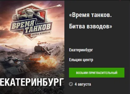 Пригласительный на "Время танков. Битва взводов" Екатеринбург