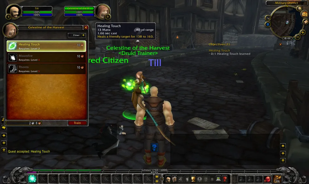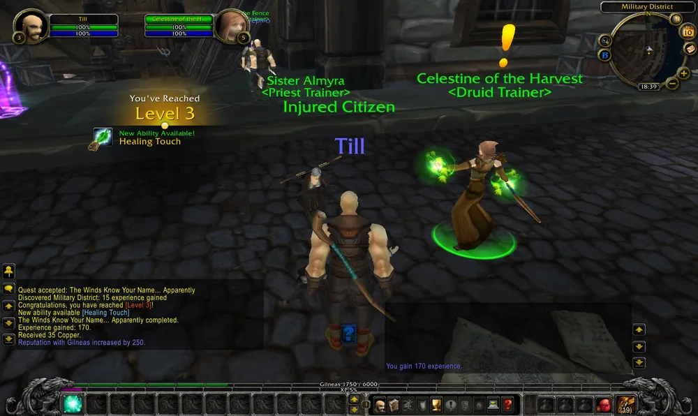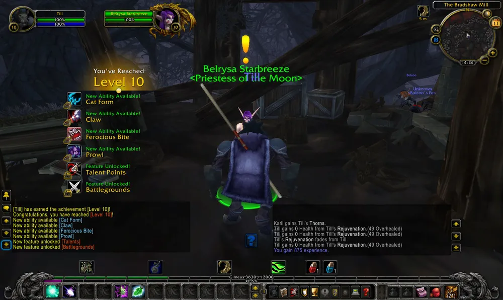 По-новому теперь отображается информация о новом полученном уровне. В чате выводится строка, в которой можно кликнуть на надпись, после чего выводится информация, что же нового. Мне вот на третьем уровне показали, что я могу выучить новую способность Healing Touch: