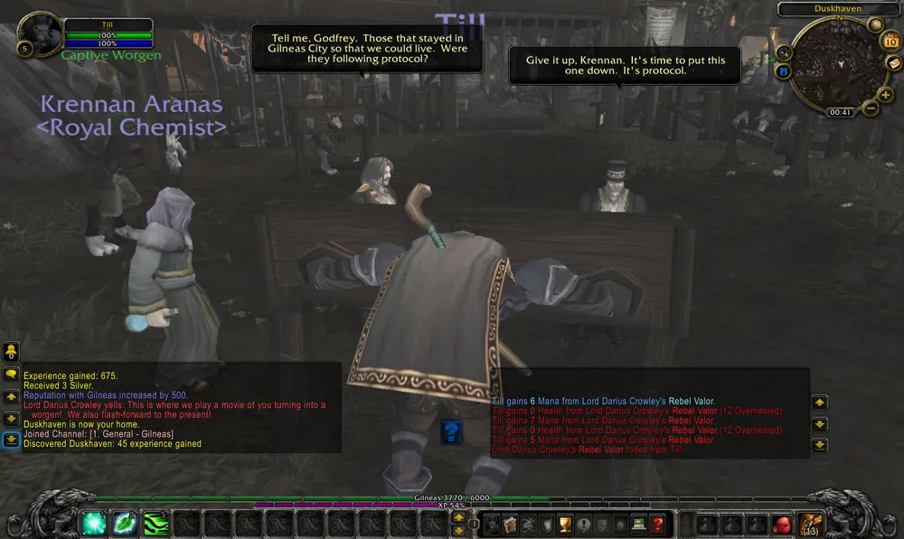 По сюжету на Гилнеас напали воргены, идет сражение с ними, эвакуация и т.п. По квестам меня также направили убегать, по дороге направив к наставнице друидов, которая... человек. Друид-человек. Ну ладно.
