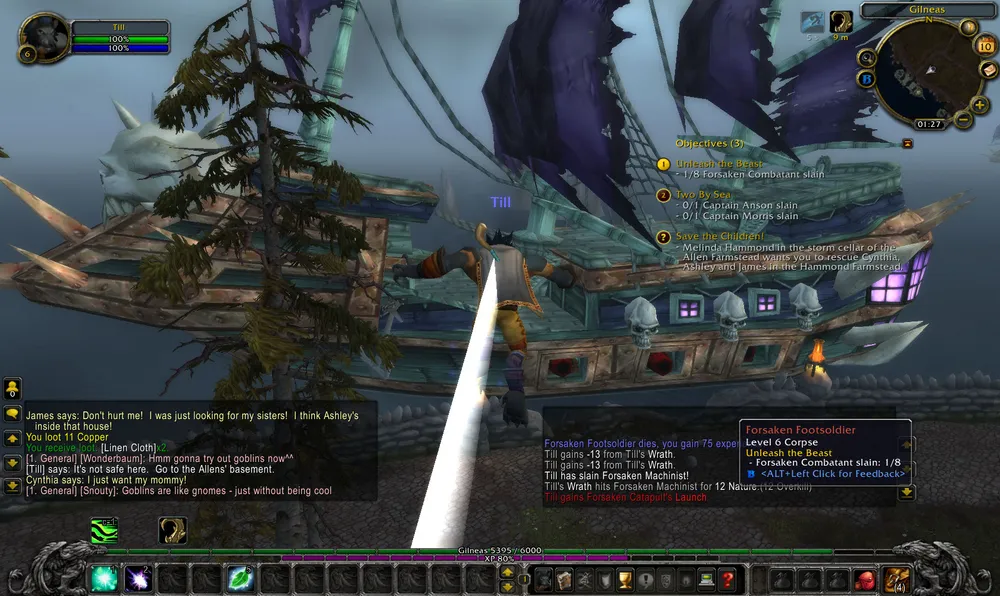 Вот скриншот из одного квеста, по которому нужно захватить катапульту нежити и выстрелить самого себя, попав на их корабль. Там нужно убить капитана, причем на корабль больше никак попасть нельзя. Мне понравилось. ;)