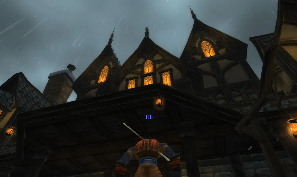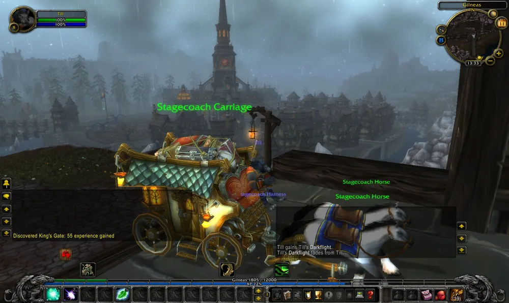 Вообще, в отличие от остального мира WoW, в Гилнеасе почему-то что-то вроде 19 века. Все ходят в котелках, даже женщины носят шляпки. Кареты, огнестрельное оружие сплошь и рядом. И еще шпаги. В общем, атмосфера своеобразная, не могу сказать, что мне она нравится. По-моему, тут небольшой перебор.