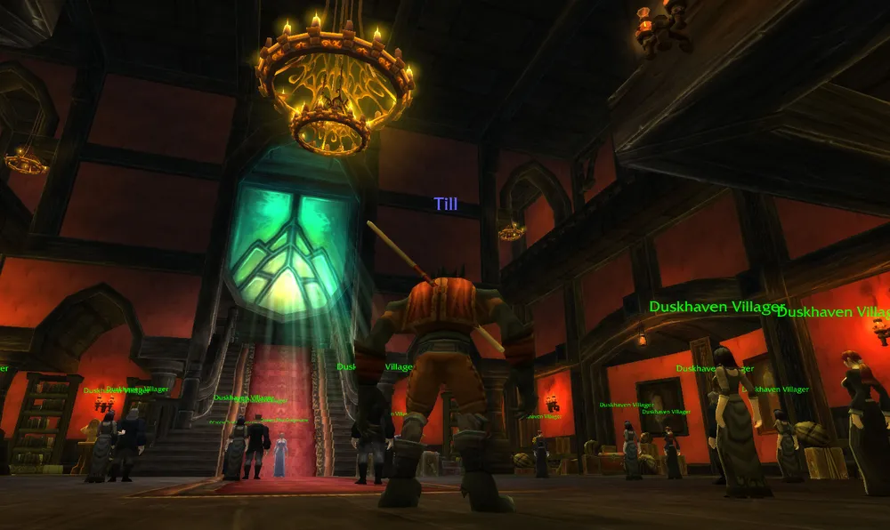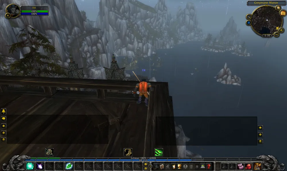 В связи с обрушением земли люди решают эвакуироваться, а меня отправляют на лошади в поместье короля Greymane'а (Седогрива?). Оно сделано очень красиво, смотрите ниже. Поднявшись в обсерваторию короля, мы с ужасом обнаруживаем, что затопило новые земли, и деревушка Duskhaven полностью затоплена. Как жестоко! Сравните карту с ее предыдущим вариантом, кстати.