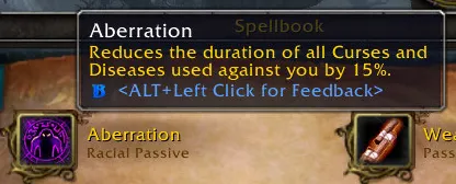Aberration - уменьшает время действия проклятий и болезней, наложенных на вас, на 15%.