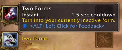 Two Forms - позволяет переключать форму воргена и человека. Становится доступно на 10 уровне после выполнения квеста Neither Human Nor Beast.