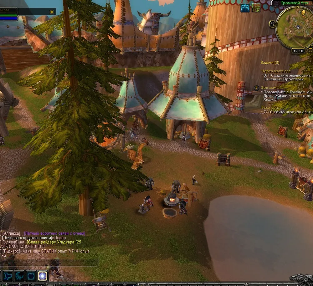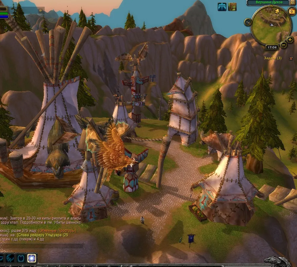 На другой стороне уступа ,наступая одна на другую , громоздились лавки торговцев оружием.Ничего интересного.То ли дело лавка Аски и Наала.Большой котел,в котором мерно булькала аппетитная субстанция,притягивал своим запахом любого прохожего.Интересно,что же там.Суп из оленины и диких грибов?Или уха из луциана с добавление зул'фарракстской грязи?Друид мотнул головой.Не время.Мечтательно улыбнулся и направился к башне.Поднялся по спиралевидной лестнице выше.Тал.И парочка его ветрокрылов.Привычная картина.Давно уже Кибу не пользовался его услугами,с тех пор как Тюрак научил его искусству превращения в орла.