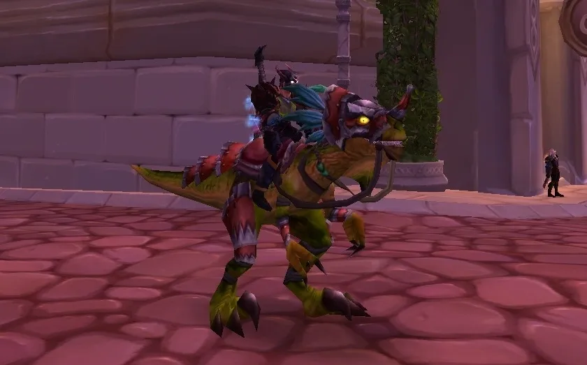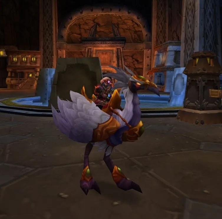 Требует 60 уровень, но 75 навык верховой езды. Покататься на нем можно только в подземелье Ан'Кираж.