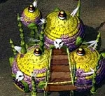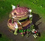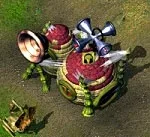 Кроме того армия каждой стороны имеет свой набор уникальных боевых единиц. Их производством / дрессировкой занимаются на звероферме эльфов, оружейном заводе дриад и ферме Морро антов. Распределим их продукцию так: два вида зверюг эльфов быстры и сильны, катапульта и пушка дриад неповоротливы, но хороши, чтобы крушить здания (те же крепости и заставы), у антов один мутант плюется кислотой, а другой - силач в ближнем бою. Также дриады и анты имеют похожих по сути диверсантов, которые подрывают вместе с собой противника.