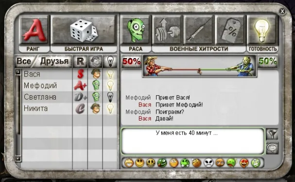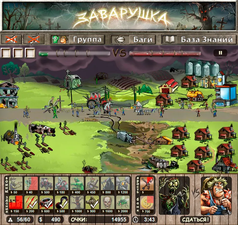 В увлекательной стратегии 'Заварушка!' выбери сторону в борьбе между нежитью и людьми. Тренируйся в кампании, сражайся с реальными соперниками в онлайне и зарабатывай рейтинг. Присоединяйся к битве и стань лучшим бойцом!