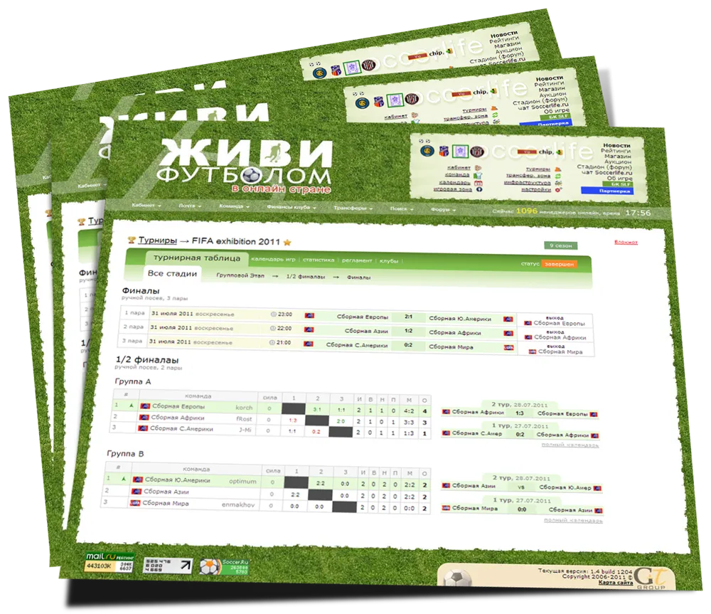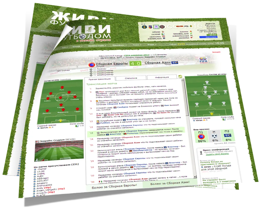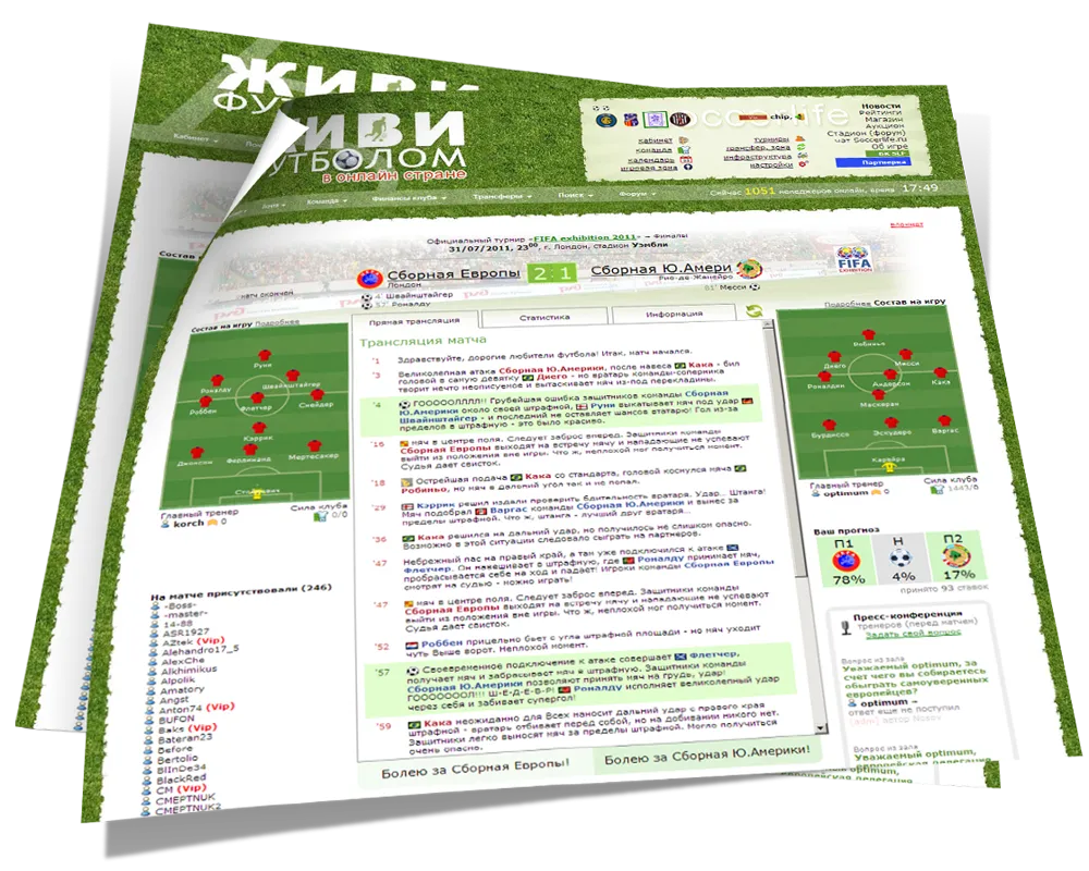 Живи Футболом - это многопользовательская бесплатная онлайн игра в жанре футбольного менеджера, предлагающая уникальный опыт управления клубом, лигой или федерацией. Участвуйте в жизни проекта, становитесь журналистом, редактором или просто общайтесь на форуме. Откройте для себя виртуальный мир футбольного менеджмента!