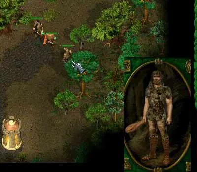 Зеленый тролль - самый сильный из троллей, но такой же тупой, как и остальные. У него есть особенность - он умеет обращать врагов в камень, но это его не спасает. Дело в том, что свое заклинание он насылает на того из врагов, кто нанес ему удар. В данном случае это Найра с арбалетом (она стоит окаменелая, и помечена цифиркой 2). Но троллю невдомек, что его главный враг - это Фергард, который преградил ему путь каменной стеной, поставил огненный вал перед ней, и все время подновляет и то, и другое. Но тролль упорно кидает "каменное проклятье" на Найру, хотя если бы он "закаменил" Фергарда, героям пришлось бы очень плохо!