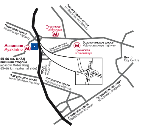 Проезд до станции метро «Мякинино». Выход к выставочным павильонам.