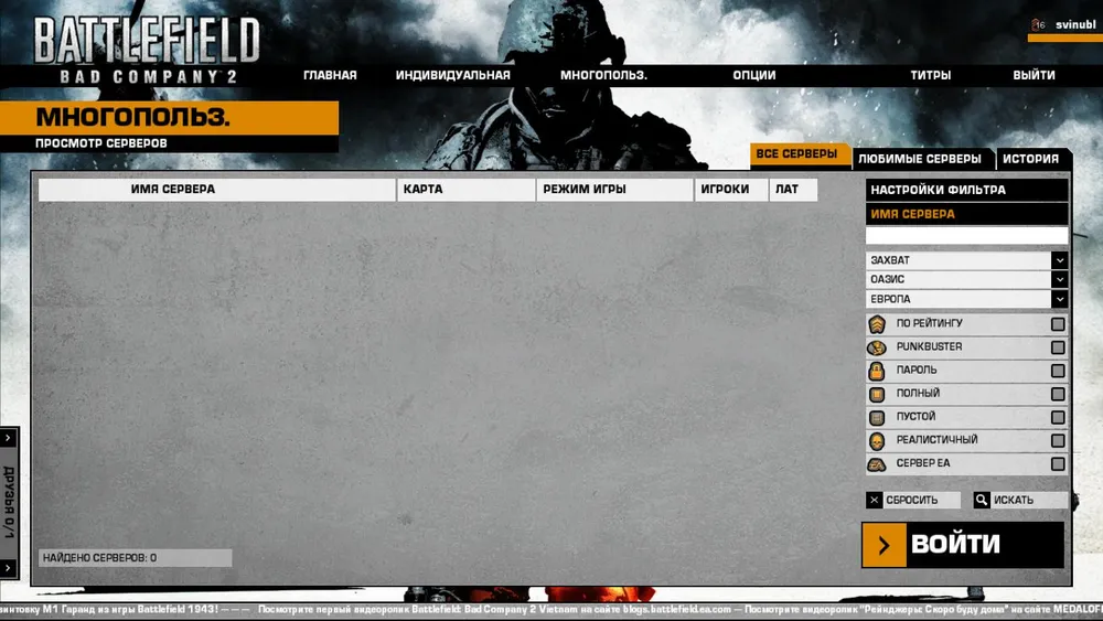 Далее находим сервер, где есть свободные места