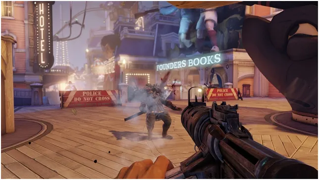 Наш герой Букер ДеВитт на протяжении всей игры использует большой и мощный арсенал оружия, от гранатометов до мощного револьвера для близкой дистанции. Также у него есть богатый выбор оружия для дальней и средней дистанций, в том числе, снайперская винтовка, карабины, охотничий от Основателей или Поливалка от Гласа Народа.