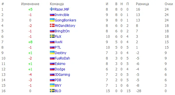 Подводя итоги, можно сказать что все топовые коллективы или удержали позиции, или же прилично поднялись. Продолжают падать в турнирной таблице PDB, и неожиданно очень много потеряли JDGaming скатившись в опасную зону. В свою очередь феноменальный скачек осуществили AwN поднявшись сразу на 8 позиций, мало того пондявшись из зоны вылета, команда попала в призовую 8-рку.