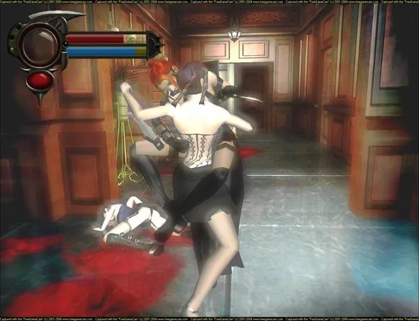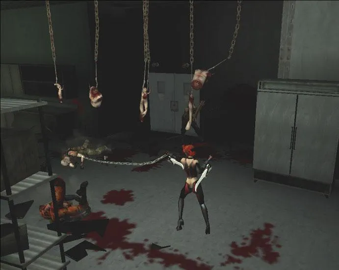 Кстати, одна из самых нужных вещей во всей игре - это гарпун. Без него мы даже не сможем пройти некоторые стадии. По началу он будет нам только мешать, но затем оказывается что очень годная штука, практически незаменимая в борьбе и передвижении. С его помощью можно дать противникам полетать и самому быстро перемещаться по этажам здания. Ещё с помощью гарпуна мы можем выбить у противника оружие (только не у боссов). Кстати на счет оружия даже по сравнению с первой частью его кажется меньше: ну конечно наши сабли, парочка пистолетов (которые не прочь по питаться кровкой хозяйки), да автоматик. И ещё гарпун необходим для убийства большинства боссов в игре (например: вырвать сердце босса, или разорвать его на кусочки мы не сможем без гарпуна)