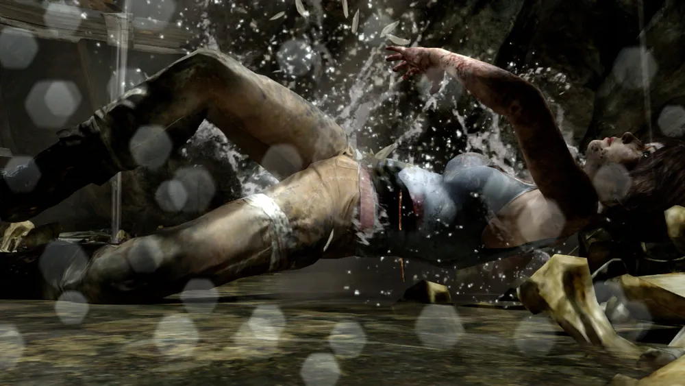 Лара должна упасть на кусок арматуры и продырявить бок? Тоже есть! Только вместо арматуры острый сук.