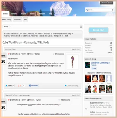 Как, я и говорил раньше, Воллей работает над своим офф. сайтом нашей любимой игры. Теперь вы можете зайти наCube World Portal и узнать много нового, посмотреть картинки, поговорить с новыми игроками и, конечно, прочитать новости от Wollay.