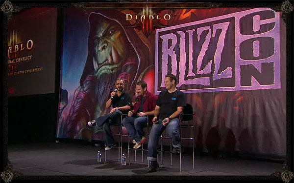 Повествование начинает Крис Метцен. В этом году серия Diablo отмечает свое 15-летие, 7 BlizzCon'ов прошло, но никогда еще они не вели такого открытого подробного рассказа по игровой истории. Даже по WoW. В ходе секции разработчики собираются поделиться информацией по историческим аспектам, рассказать о некоторых деталях Diablo III и потом, если останется время, ответить на парочку вопросов.