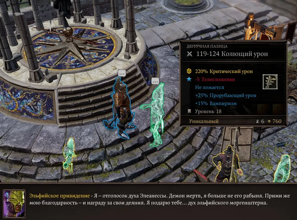 Стоило Сандору переместиться на площадь Аркса, чтобы приступить к очередному скучному, но необходимому делу – покупке ожерелья, как к нему подбежало эльфийское привидение и «наградило» двуручной палицей. Не ломается (единственно неразрушимое оружие в игре! На первых этапах – бесценное!), наносит колющий урон, без дополнительного урона и слота – словом, абсолютно бесполезное. Ещё одна чья-то глупая шутка…