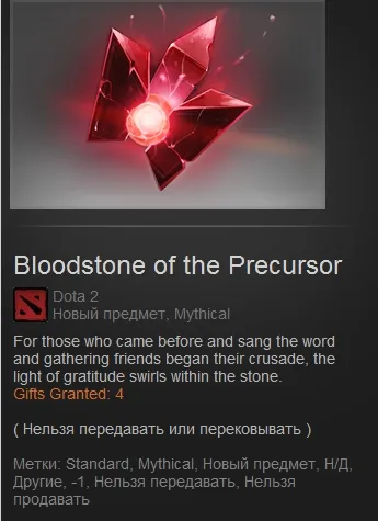 Сегодня (10.07) некоторые пользователи обнаружили в своем инвентаре "Bloodstone of the Precursor"