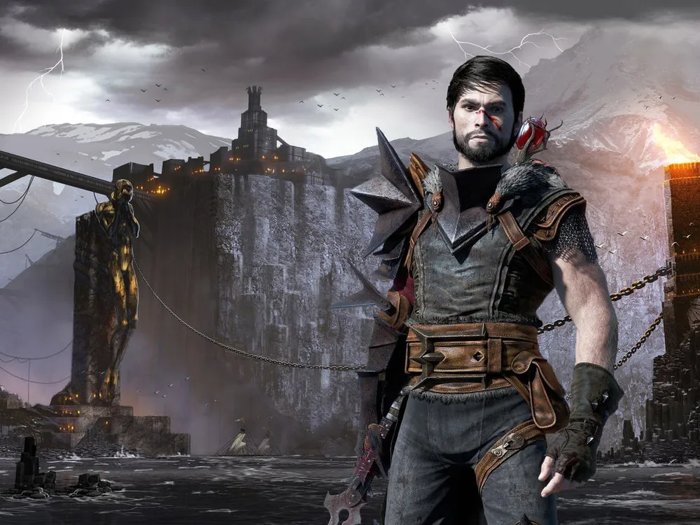 Закованный маг кунари, Андерс нервно курит в стороне...