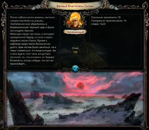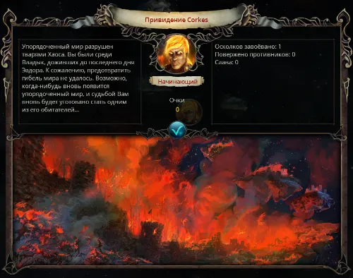 Тепловая смерть ВселеннойНачните кампанию, захватите обучающий осколок и раз за разом завершайте ход, находясь в астрале, до тех пор, пока Зарр не расскажет вам о том, что приближаются дьяволы. После нескольких ходов (не захватывайте осколки) появится сообщение, что Эадор захвачен Хаосом.