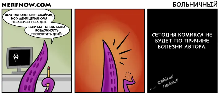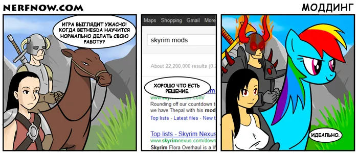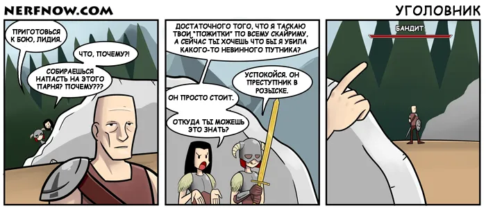 Автор Nerfnow совершенно точно стал фанатом новой игры. Больше комиксов одной тематики имеет только его родная серия о TF2 и SC2. Более ранние комиксы Nerfnow о Скайриме в предыдущем посте.