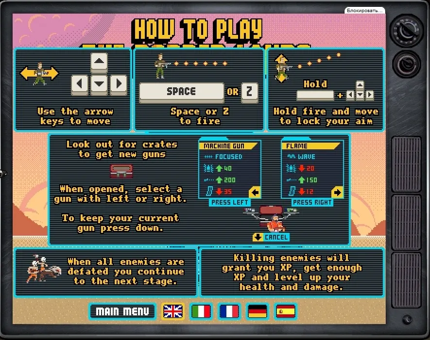 Всем привет! Сегодня я расскажу про 16-битную игру The Border Lands. Это официальный демейк игры Borderlands 2, и в демейке присутствуют почти все особенности основной игры. В эту игру можно играть прямо в окне браузера; жанр игры - сурвайвал-шутер с видом сверху.