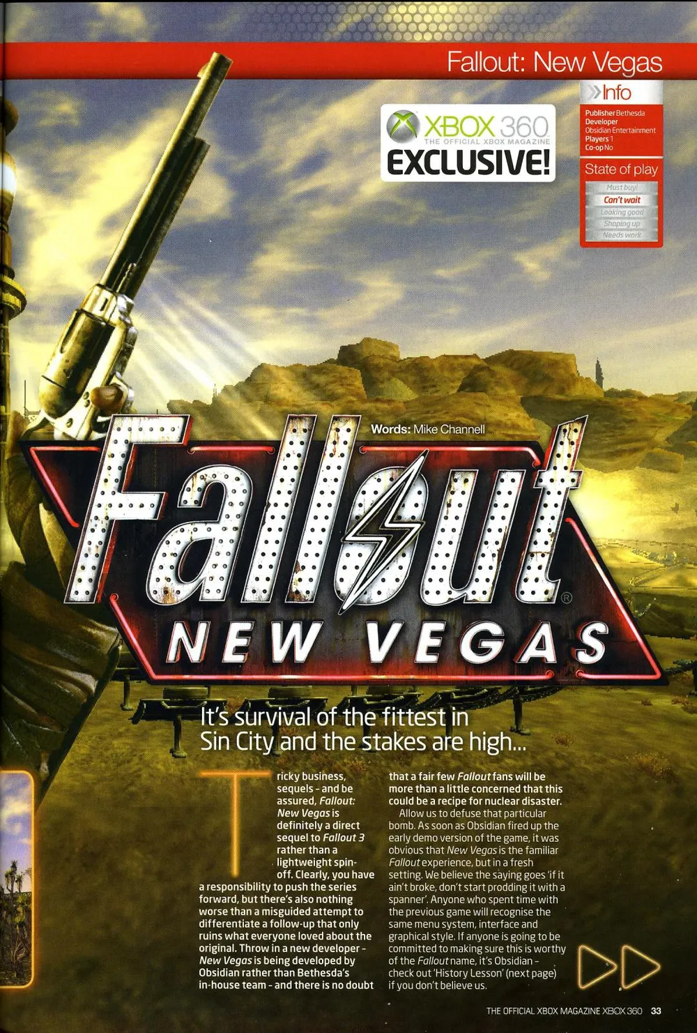 По-хорошему только сейчас вся игровая общественность должна была узнать первые подробности о Fallout: New Vegas, но не тут-то было :). Сначала в наши шаловливые ручки попал выпуск журнала PC Gamer, потом PSM3 и вот, наконец, дело дошло и до того самого "эксклюзивного" OXM, о котором речь шла ещё с самого начала. Что же, сами сканы статьи можно как всегда увидеть здесь. На счёт подробностей: