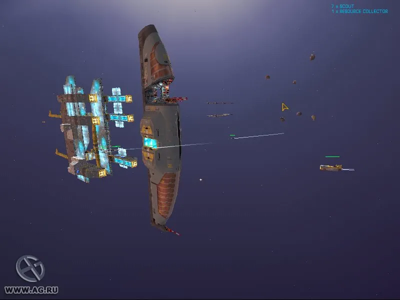 Враги сожгли родную хату... Но не будем о грустном. Будем думать, что делать дальше... А дальше надо делать вот что: собирать ресурсы, увеличивать группировку истребителей еще на пару десятков перехватчиков и строить еще трофейные корветы до 12 единиц. Постройте контроллер ресурсов (Resource Controller) и еще один сборщик. Когда появится раса торговцев – Бентузи (Bentusi), не спешите сразу покупать технологию ионных пушек, так как после этого пойдёт атака Тураников. Набрав ресурсы, отстроив флот и подготовившись к баталии, покупайте технологию. Бентузи уйдут, а на Вас нападут. Выстроите свои истребители «Иксом» и отбивайтесь от перехватчиков Тураников. Когда к Вашему материнскому кораблю подойдут ионные фрегаты, захватывайте. Желательно, чтобы они отвлеклись обстрелом материнки, затем берите на абордаж. Если уничтожат пару трофейников – не страшно. Учтите, если к вражескому ионному фрегату пристыковался хоть один Т.К., то врагу уже нацелиться не дадут, и он будет нейтрализован. После того как Вы разберетесь с первой атакой, на Вас пойдет авианосец. Отбивайтесь «импортными» ионниками и истребителями. Для атаки на крупный корабль наиболее эффективно построение «Коготь» (Claw). Одновременно, Ваши истребители пусть обстреливают истребители врага, а трофейные корветы пусть забирают эскорт, состоящий из еще одной парочки ионных фрегатов. Получив серьезные повреждения, вражеский транспорт попытается улизнуть. Добивайте его всеми силами. После уничтожения и захвата сил врага собирайте оставшиеся ресурсы и прыгайте.