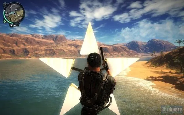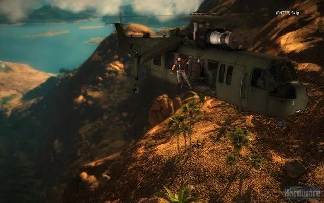 Мир просто огромен, даже та территория что в демке. Огромное количество фана, трюков, вариантов экшна. Фактически развлекать себя можно самому - идеальный сандбокс. Крюк и бесконечный парашут не дают заскучать в долгих передвижениях. Чего только стоит разгромить армейскую базу, завалить 100метровую антенну, угнать вертолёт, вылезти в воздухе из кабины, прицепившись крюком за днище расстрелять стрелка на другом вертолете, спрыгнуть с парашютом, крюком прикрепится к другому вертолету, выбросить пилота, расстрелять с него еще одну армейскую базу, спрыгнуть на землю, угнать бтр, догромить оставшееся, разогнаться, вылезти на крышу, расстрелять преследование, спрыгнуть с утёса, перепрыгнуть на мотоцикл... Это первых минуты три. Демка ограничена 30минутами, но это хорошо. Кстати время добавляют за миссии и трюки.