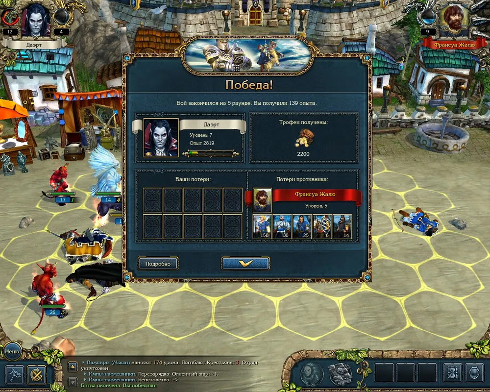 Первым делом выяснил подробности у нашей старой знакомой Клариссы. Она порекомендовала остановиться в постоялом дворе "У пчелки" на отшибе. ОБЯЗАТЕЛЬНО развиваем умение "Контроль Ярости" чтобы увеличить максимальные запасы ярости (мне повезло - в одном из магазинов также оказался шлем добавляющий еще 5 единиц ярости). Боевки все еще непростые, но сравнивая с тем, что было раньше это уже не проблема. Добираемся до постоялого двора и НА ТЕБЕ!!! Владелец Жан Кес Делакур нас уже было принял, да вот беда - Даэрт сболтнул лишнего и теперь придется искать доводы поубедительнее. А мы между тем наведаемся в трактир "Подзорная труба" выясняем все, что нужно и берем один из трех бонусов по выбору (я лично выбрал Лидерство, а то у Мага его обычно не хватает). Не забудем также доставить его записку местным контрабандистам. Гуляя по главной улице натыкаемся на красотку увлеченно болтающую с торговцем. Скупаем у торговца весь ассортимент и прислушиваемся к его разговору с красоткой. Оказалось, что эта красотка по имени Фелин Делакур - жена владельца постоялого двора, в который нас не пустили и МАТЬ МОЯ ЖЕНЩИНА!!! ОНА ФЛИРТУЕТ С ТОРГАШОМ!!! А у нашего компаньона на основе увиденного созрел план взять Фелин в заложники, чтобы убедить Жан Кеса сотрудничать. Правда торговец влез в это дело и теперь придется драться. Ндааа уж, а торгаш оказался не так уж прост. Кавалеристы в его отряде ходят первыми и тут же добираются до наших рядов. Раскачал "Снаряд Хаоса" до уровня 3, разрядил кавалерию на вампиров (их вполне можно восстановить), "Снарядом" прикончил кавалерию, а с остальными справиться не так уж сложно.