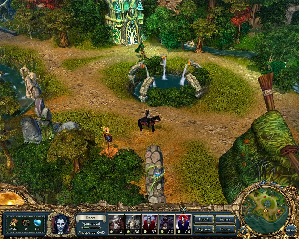 Осталось лишь выбить отряды, засевшие в замках карателя Лианила и наместника Гауля Лайтеля и все. Бой в замке Лианила - ничего особенного, а вот бой на развалинах замка наместника был очень даже напряжным. Подлые друиды постоянно переманивали вызываемых мной животных, дриады создавали дополнительные проблемы высаживая терний, отряд феечек свыше 4000, да и про эльфийских стрелков с древними энтами забывать нельзя. В начале боя применил на феечках "Ревность" и старался как можно быстрее зажать стрелков и друидов, против гипноза друидов использовал "Рассеивание", "Ревность" прошла с сохранением эффекта и феечки вконец обезумели, против терний и древних энтов выступил феникс.