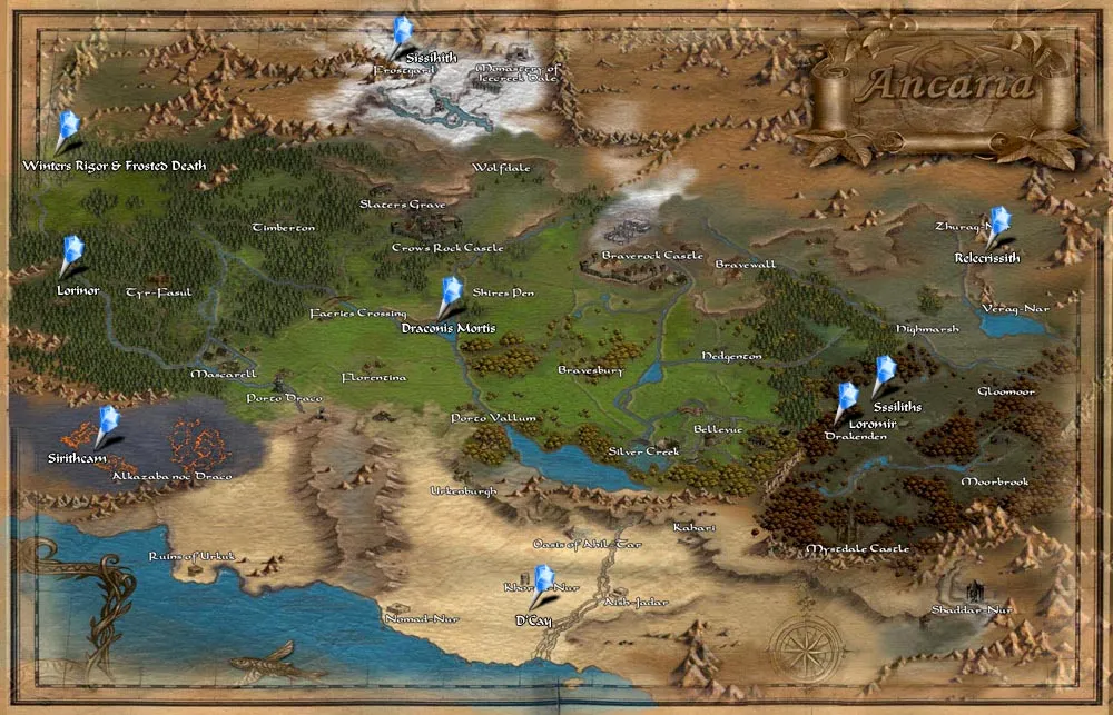 Этого огнедышашего дракона довольно просто найти... На первый взгляд кажется что к нему можно дойти из Tyr-Fasul или Mascarell, однако это не так. Единственный путь к нему ведет через Porto Draco. Выйдите из города на северо-запад и идите вдоль реки, вы увидите небольшую лесную тропинку, которая приведет вас к дракону. Около этого дракона вы найдете Темных Эльфов, Призраков, Лесных Троллей и Ящеров...