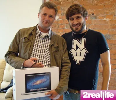 Как уже говорилось, ранее в посте [post]Свершилось! Apple MacBook Pro 13 Mid 2012 нашел своего хозяина![/post], уникальный приз в первом, подобного рода розыгрыше РЕАЛЬНЫХ призов от проекта «Небеса» нашел своего правообладателя. Хотя, удалось только найти всего одну фотографию, на которой запечатлены победитель, Алексей Мякишев, и продюсер проекта «Небеса» - Роман Поволоцкий. В этой лотерее было также разыгран множество игровой валюты, игровых образов, которые приносят его владельцам неимоверные бонусы к боевым характеристикам.