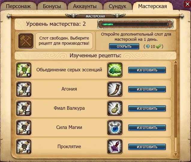Теперь вы сами можете выбирать свой путь, изучать то или иное искусство, развиваться в определенном направлении, и достигать нем невиданных высот. Любой Хранитель, который захочет заняться ремеслом теперь самостоятельно может приготовить эликсир.Когда же уровень мастерства Хранителя поднимется до 5-го, то ему станут доступны тайные знания бриллиантовых эликсиров!
