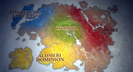 Теперь переходим к тому моменту рассказа, почему этим трем сторонам не сидится дома охота воевать. Южный эльфийский Альдмерский Доминионы, который ведомый остроухих высших эльфов Эйренн, так вот они хотят расу остроухих вернуть обратно в большую политику, а заодно отомстить правителю центральной провинции за все его злодеяния.