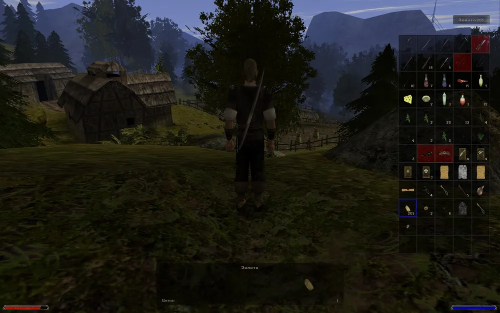 Покиньте тропинку и пройдите вдоль скал вправо - к Малету - пастуху овец, расположившемуся возле леса. После разгорова с ним будьте готовы тут же принять схватку с напавшим на овец волком – убить его должен именно главный герой (нам же нужен опыт!). Во время разговора узнаете имя владельца фермы - пообещайте Малету разобраться с бандитами и идите к нему. От Лобарта нам нужна работа, за которую нужно просить продать одежду дешевле и не в коем случае те гроши, что он платит золотом! Собрав репу (один из самых атмосферных, приземленных квестов Готики :)) – поговорите с работодателем и отнесите добытые 25 репок его жене. Не забудем попросить похлебку. Далее идем за сковородкой к торговцу, что расположился на дороге к городу – внизу. Заодно стоит купить у него вино (хотя, можно и украсть в сундуке Лобарта (там так же лежат сыр и яблоки), или получить в награду от Малета, уничтожив бандитов), после чего отдать это вино Вино. Если вы внимательно слушали все диалоги и досконально исследовали местность – все последние события скорее всего должны проходить уже глубокой ночью, так что отправляемся спать. Ну вот – первый день и пройден.