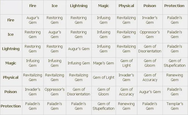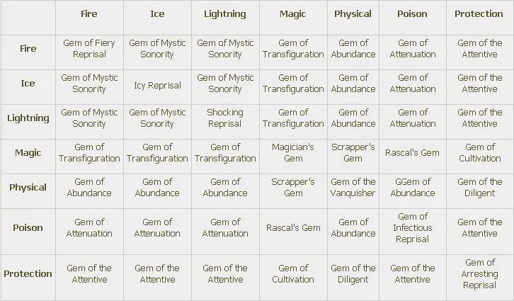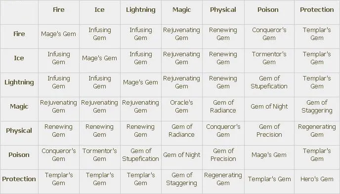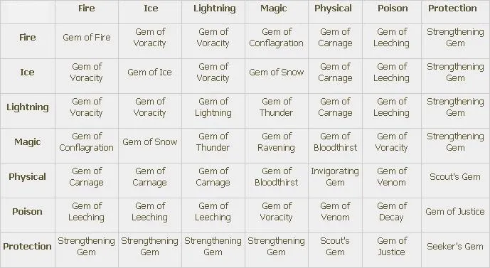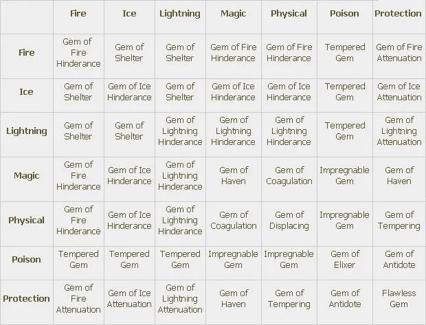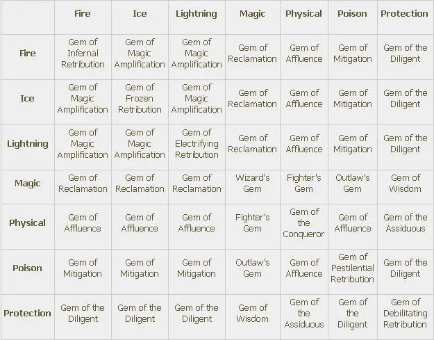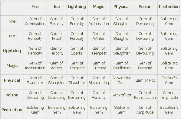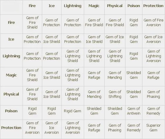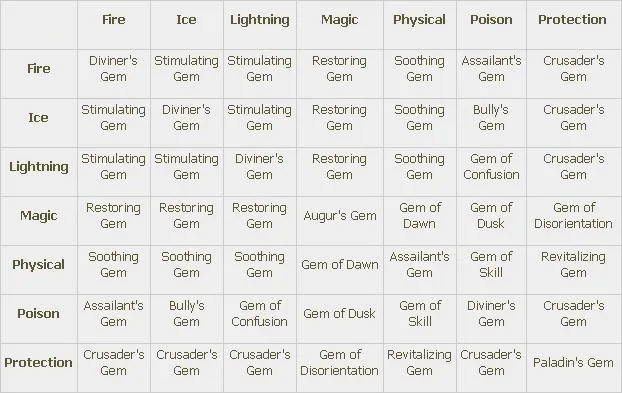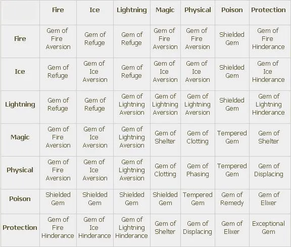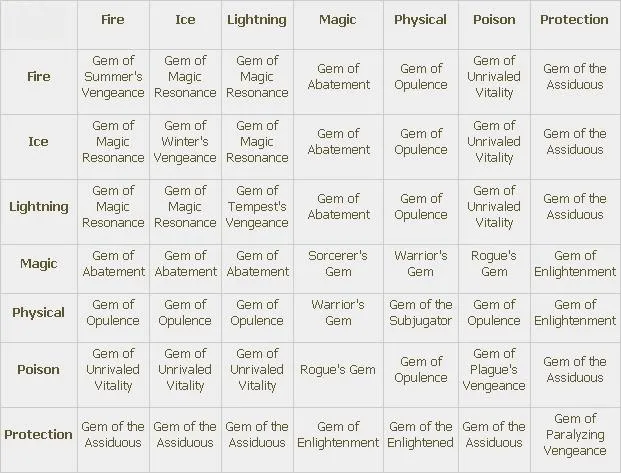 Самоцветы это объединённые кристальные осколки, которые можно инкрустировать в оружие и броню (помните, что броня включает щиты). Всего существует 4 типа самоцветов: для Оружия (Weapon Gems), для Брони (Armor Gems), Вспомогательные (Utility Gems) и Эпические (Epic Gems).