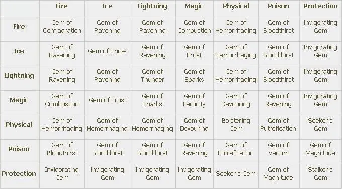 Самоцветы для оружия можно инкрустировать только в оружие или использовать для его создания. Для крафта оружия можно использовать Самоцветы для оружия и Вспомогательные самоцветы, а для крафта Посохов (Staves), Скипетров (Sceptres) и Шакрамов (Shakrams) только Вспомогательные Самоцветы.