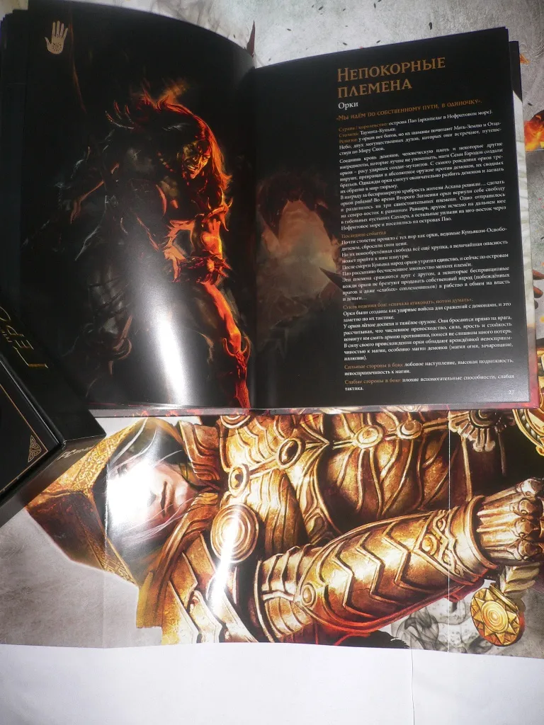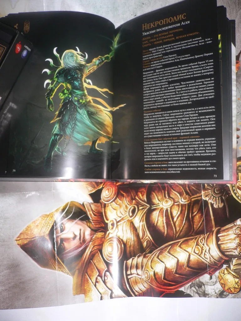 [B]3) Артбук.[/B] Книга, выполнена на мелированой бумаге. Очень хорошего качества. Артбук включает героев, замки, юнитов, нейтральных юнитов, описание игровых фракций.