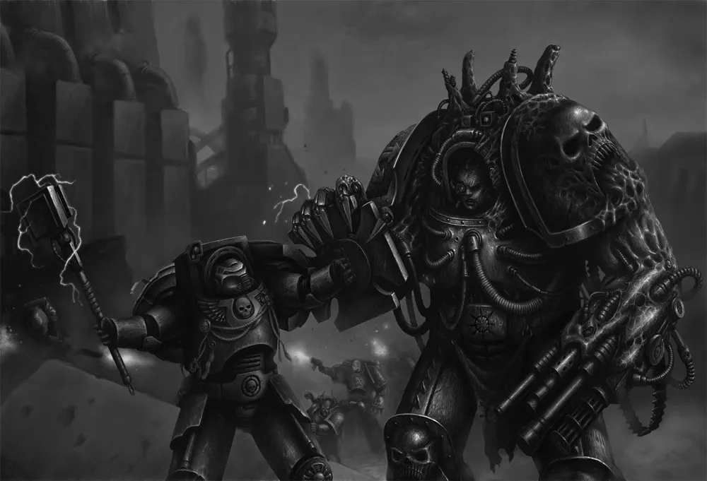 Магистр ордена Кровавых Воронов Габриэль Ангелос и его силовой молот Сокрушитель Богов имеют весьма интересную историю. Молот был создан из части Воющего Рока — демонического оружия Аватары Кроваворукого бога Биэль-Тана, поверженной за несколько сотен лет до событий первой части игры. Можно предположить, что молот, созданный из таких нетрадиционных материалов, превосходит любой из своих аналогов. Возможно даже, что он, подобно оружию эльдарских провидцев, в бою представляет собой единое целое с разумом владельца… Ангелосу Сокрушитель был подарен инквизитором Мордекаем Тотом во время кампании на Тартарусе, куда Ангелос, тогда еще капитан третьей роты космодесанта, был отправлен воевать против зеленокожих головорезов — орков. Впрочем, вскоре обнаружилось, что орки — лишь ничтожная частица того, с чем ему предстояло столкнуться. Альфа-легион — богомерзкие космодесантники-ренегаты, возглавляемые лордом Бэйлом и колдуном Синдри Миром, пытались отыскать там, на Тартарусе, древнюю и могущественную реликвию Хаоса — Маледиктум. Отбив первое наступление сил Хаоса, космодесантники завладели артефактом, не зная о его истинной природе, и вскоре брат-библиарий Исадор Акиос, тот, чья близость с Имматериумом была наиболее велика, пал жертвой темной воли Маледиктума. Казалось, что рота десантников, потрепанная в сражениях с орками и культистами Хаоса, лишенная своего главного советника и наставника, обречена на гибель…