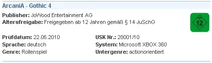Arcania: возрастное ограничение по USK
