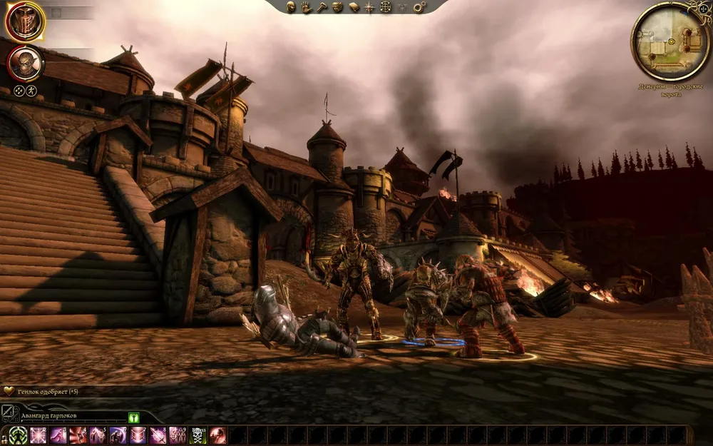 Запустив DLC в окне загрузки можно прочитать строчку «вы идете в авангарде». Смотрим не большой скриптованый ролик о том, как орда атакует Денерим. Из ролика мы узнаем, что «вы – авангард гарлоков». Не ясно, почему командир вдруг стал называться авангардом. Ну и ладно. Доблестные локализаторы скоро икать начнут. Особенно, если заценить пару следующих скринов.